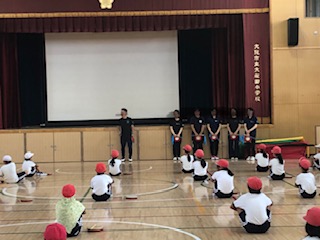 5年生はエイサーの踊りを地域の方に教えていただきました。