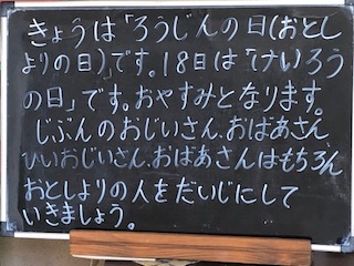 今は敬老の日(祝日)は9月の第三月曜となり、今年は18日です。