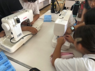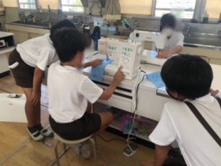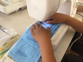 この単元で初めてミシンを使います。むずかしいですがみんなと協力して縫っています。