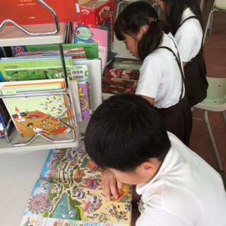今日も図書館ボランティア「てんとう虫」がお越しいただきました。