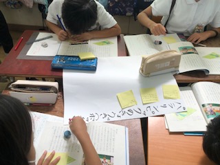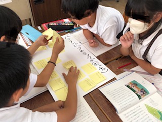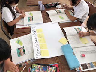 読み取ったことを班で相談してまとめていきます。