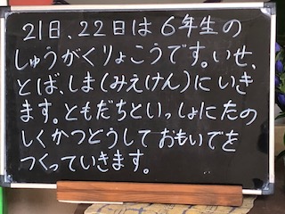 今日から1泊2日の日程で6年生が修学旅行に行きます。いい体験と思い出を作っていきます。