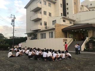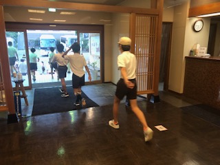 宿舎で最初にすることは避難訓練です。速やかに集合することができました。