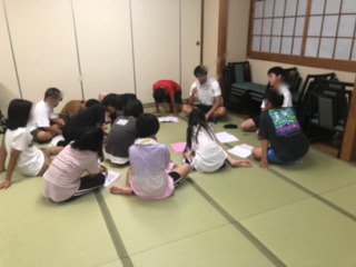 班長、室長が集まって会議を行いました。今日の振り返り、明日の行動の説明を受けました。