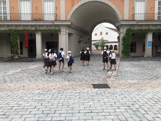 さあ、活動班に分かれてスペイン村での活動が始まります。子どもたちの足取りも軽いというより、早いですね。