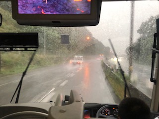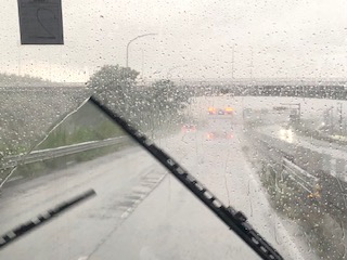 4時半頃から雨が激しく振ってきました。(天理東)対向車はライトをつけて走行しています。
