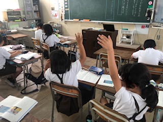 端末で調べたり、発表したりしながら学習しています。(写真は2つのクラスです)
