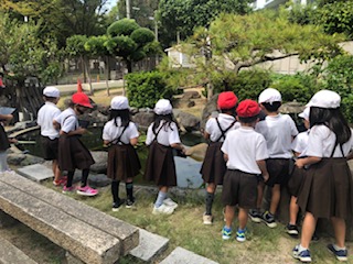 今日は校内で虫さがしをします。端末で写真を撮ります。