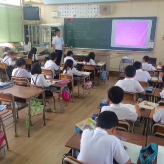 ICTを導入した授業。プロジェクターとパワーポイントを使います。