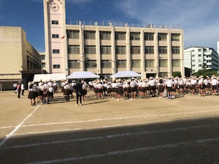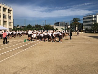 児童朝会はようやく涼しくなってきた中で行いました。今日は立って話を聞きました。