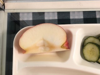 今日の給食には、りんごがつきました。