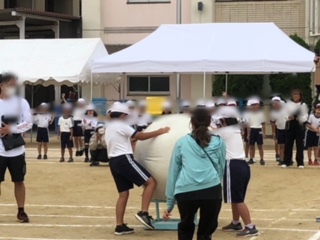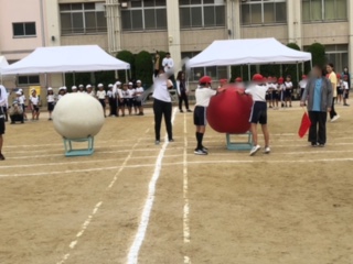 全校競技の大玉はこびをしました。