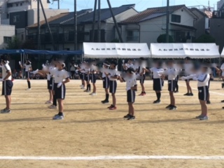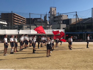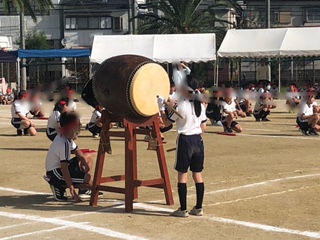 応援団の練習をしました。赤組、白組の応援団とも張り切っています。