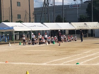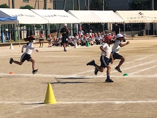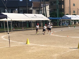 3年生が徒競走の練習をしています。(写真は別々の組です)