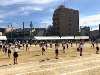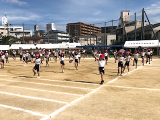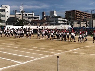 子どもたちは手にうちわを持っています。何が書かれているのかもご覧ください。