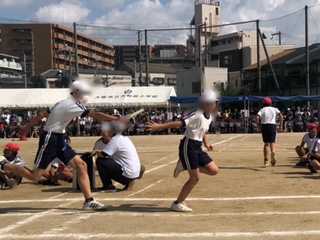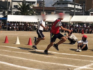 リレーは前半、後半の2組で行いました。迫力があって大盛り上りでした。