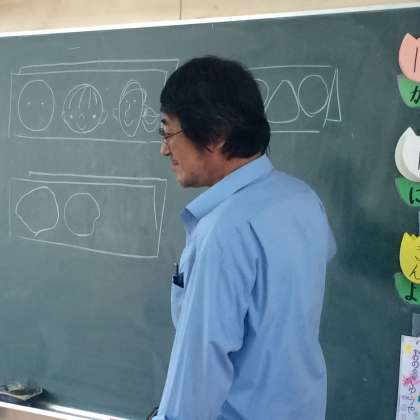 紙にまるを書いて、点を書くとき、よく考えてみると、子どもの顔に見えたり、大人の顔に見えたりします。