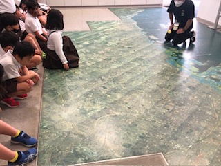 東南海地震が来た時、大阪平野にどのくらいの時間で津波が来るかを地図で教えていただきました。