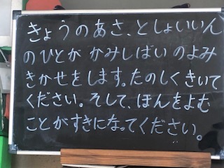 今日の朝に図書委員会の子どもたちが教室に行って紙芝居の読み聞かせをします。