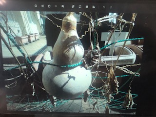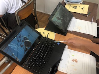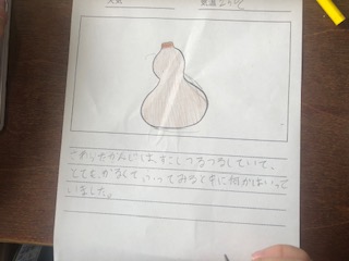 ヒョウタンの観察です。学校で実ったヒョウタンを写真に撮り、パソコンに映して観察カードにかいています。