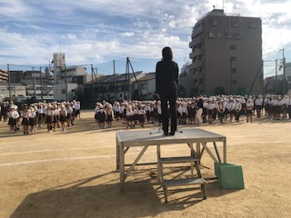 ◯校長から先週の4年生の社会見学の態度がよかったこと、施設や駅の人に元気にあいさつしていて、その方々が喜んでいたこと、全校児童では、朝の登校の時、立っておられる警察の方が気持ちのよいあいさつをしていて、自分も気持ちよくなること、の話がありました。