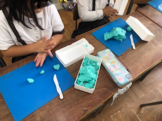 粘土でお弁当を作ります。子どもたちはわくわくしていました。