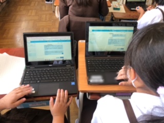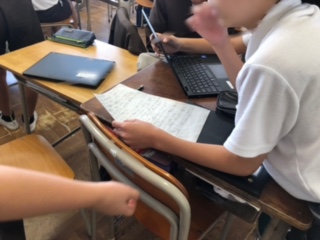 5年生、6年生はSDG’sについて学んでいます。調べたことを紙に書いています。時には友だちと意見の交流もして理解を深めていきます。