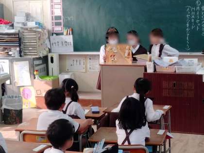 教室の子どもたちも楽しく聞いています。