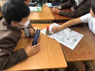今日は双六ゲームです。もちろん、英語で書かれています。班で楽しみながら英語を学んでいます。