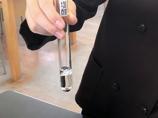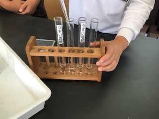 水溶液の実験です。薄めた塩酸などに金属片を入れて反応を確かめていきます。