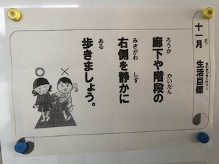 11月の生活目標が掲示されています。「廊下や階段の右側を静かに歩きましょう」です。