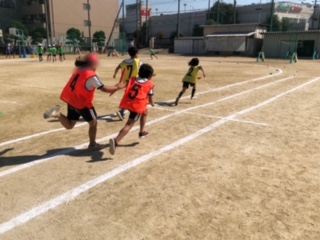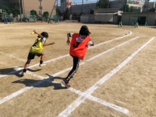 昨日の体育です。バトンバスをしっかりとできるように練習しています。
