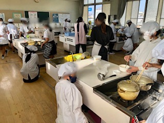 先程お知らせしたクラスとは別のクラスの調理実習の様子です