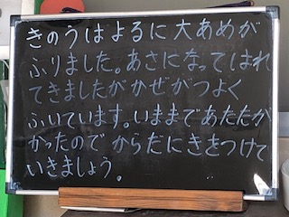 昨夜、夜中に大きな雷と大雨がありました。朝には雨も上がり、晴れてきていますが風が強く、寒くなってきています。今まで暑すぎましたがようやくふだんの秋の風情が感じられるようになりました。