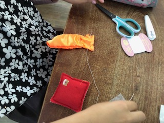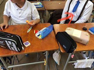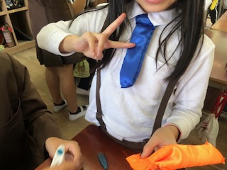 学習発表会で使うものを子どもたちが作っています。ネクタイですね。