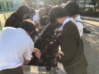 秋から来年の春に咲いていく花を植えています。花が咲いていくのはもう少し先ですが、学習発表会の時にぜひご覧ください。
