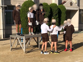児童集会は運動場で行いました。
