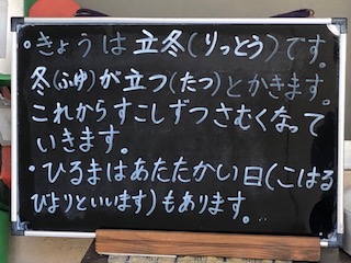 今日は立冬です。暦の上では冬です。今年は立冬の感じがしない暖かさ(暑さ?)が続いています。朝にはようやく寒さも感じるようになってきていますね。