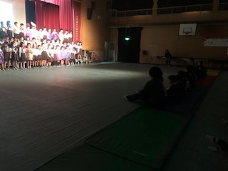 大和田幼稚園と光の園幼稚園の園児のみなさんが見に来られました。それぞれ1年生と2年生の発表を見ました。(お顔などがはっきりしないように、暗い時に撮影し画像も加工しています)