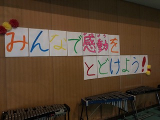 子どもたちが考えたスローガンが会場右手に掲示されています