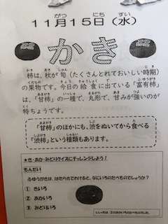 今日の給食には、富有柿がでました。秋ですね。