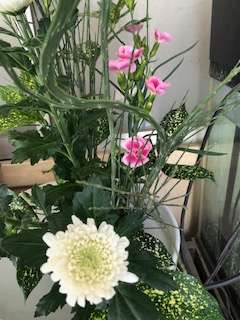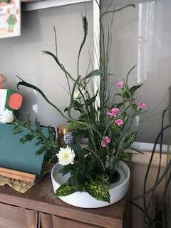 朝、校長室前に生け花が飾ってありました。生涯学習の皆様がいけてくださいました。ありがとうございます。