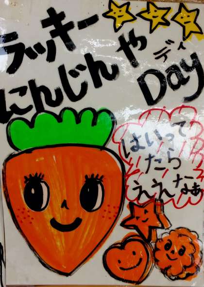 お子様が、帰ってきましたら「ラッキーにんじん、入ってた?」と聞いてください