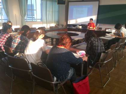 今週金曜日(10/23)に実施する「全校たてわり遠足」にご協力いただく、保護者ボランティアの皆様にお集まりいただき説明会を開催しました。