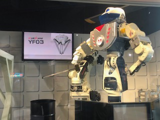 写真下のロボットは、いろいろな動きをしながら説明もしています