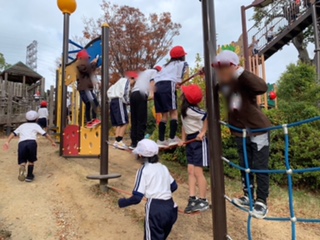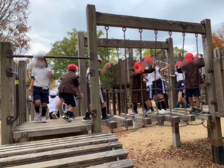 元浜緑地は遊具がいっぱい。前は雨で延期となったので、今日は待ちに待った遠足です。楽しんでいますね。