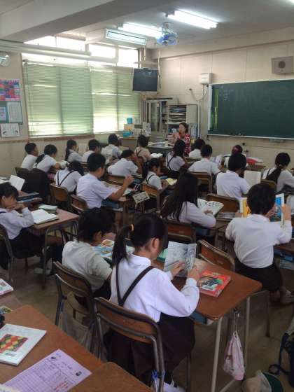 担任とともに静かに読書する学級、担任の先生が絵本を読み聞かせしている学級、様々な取り組みをしています。