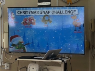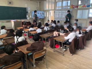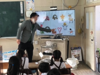 ふだんは中・高学年の外国語の授業に入っているネイティブの方が1年生に楽しく英語を教えていました。学力経年調査で中・高学年の外国語がないためです。