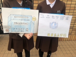 ユニセフ募金は淀中学校校区の学校が共同で行っています。(出来島小学校、川北小学校)