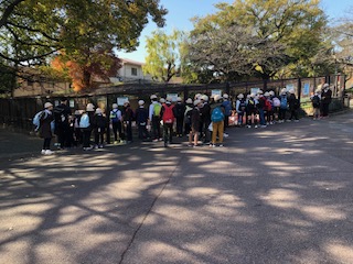 王子動物園での見学が始まりました。クラスごとに記念写真も撮りました。